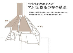 屋外側は低コストのアルミ、室内側は熱を伝えにくい樹脂が使われています。